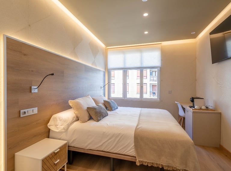 Descubre nuestras habitaciones decoradas con elegancia y confort en el corazón de Irún.